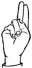 На ћирилици написано БРАНИМИРКА КЕЦОЈЕВИЋ састоји се из 19 слова [?]. Исписано ћириличном једноручном азбуком за глувонеме: